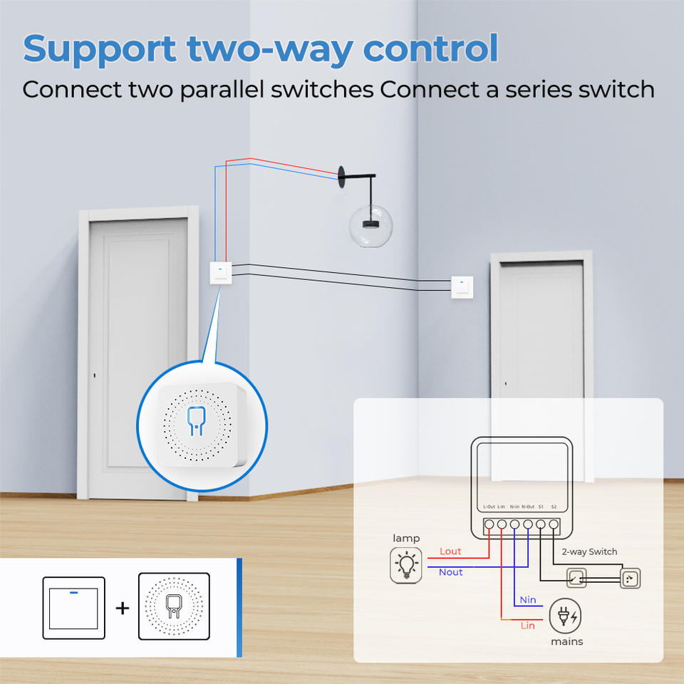 Interrupteur intelligent Wi-Fi Tuya Mini Max 16A, compatible avec le contrôle par application ou par commande vocale, minuterie ou compte à rebours, fermeture ou ouverture, appareil 1 gang