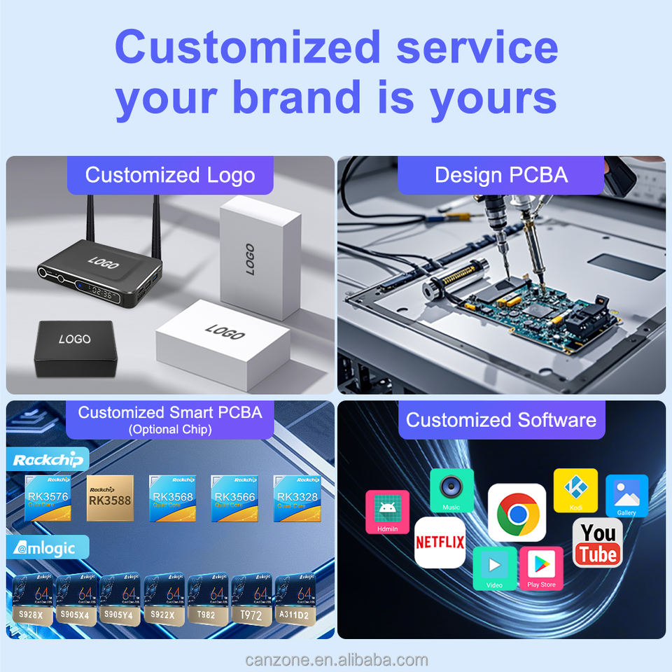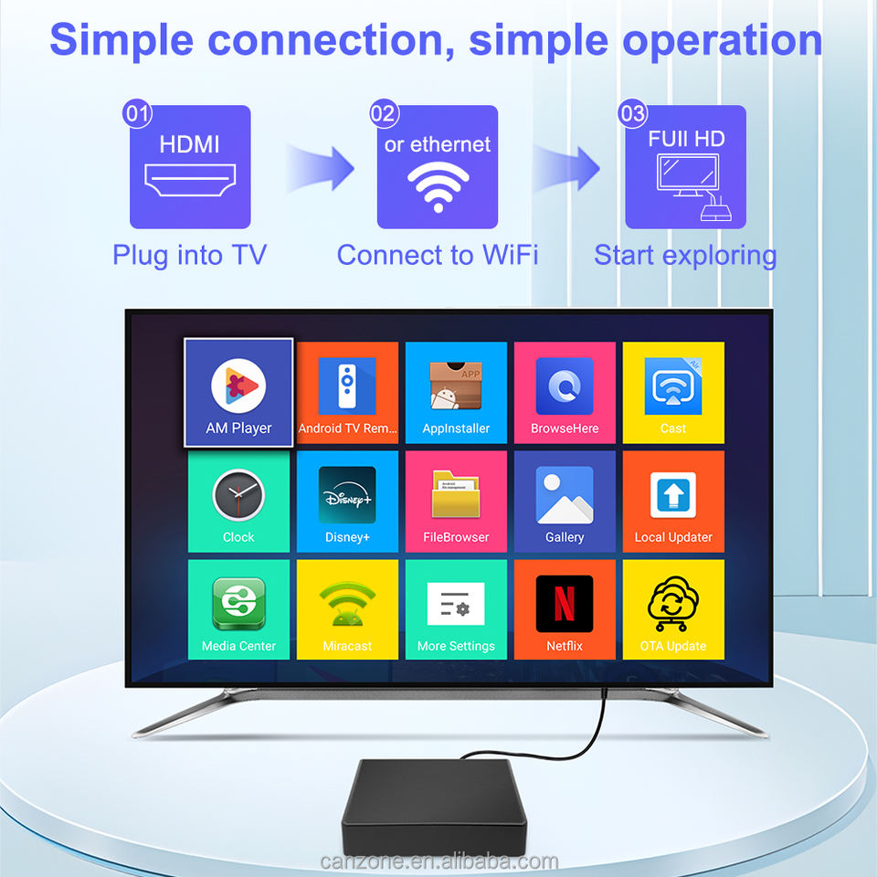 Décodeur Max Network 4K Haute Définition 802.11n 2.4G/5GHz avec Processeur Quad Core ARM Cortex-A55 Android 14 Export