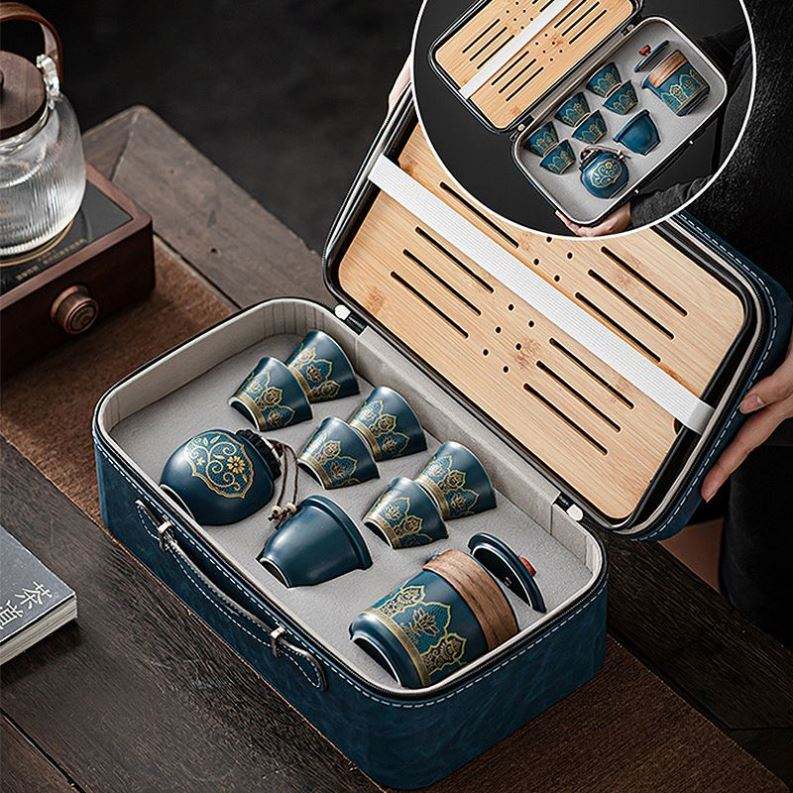 Maxfree Portable Gift Bag Outdoor, Chinese Tea Pot Cup Set with Tray Infuser Travel Ceramic Tea Set Porcelain Teapot Gift Sets/
