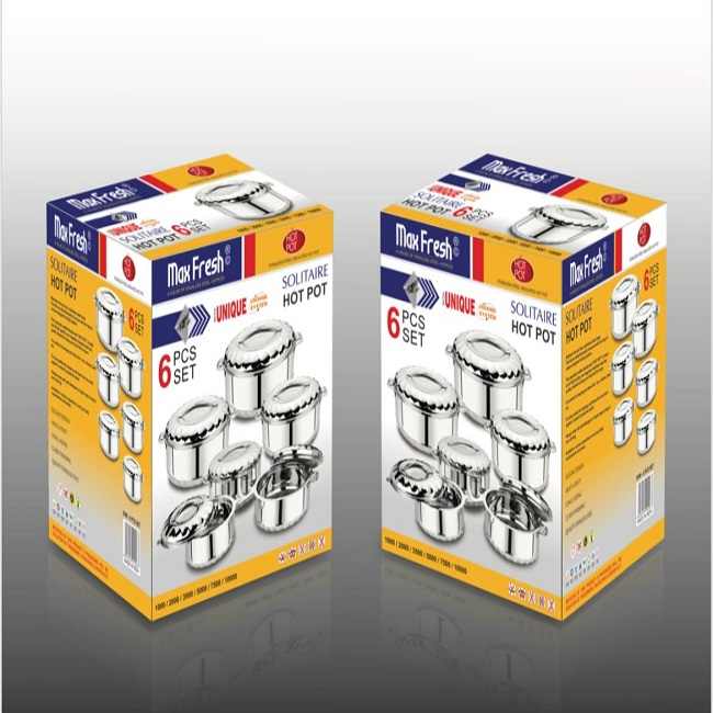 Maxfresh Solitaire marmite en acier inoxydable 6pcs Set Qualité d'exportation pour garder les aliments chauds marmite isolée