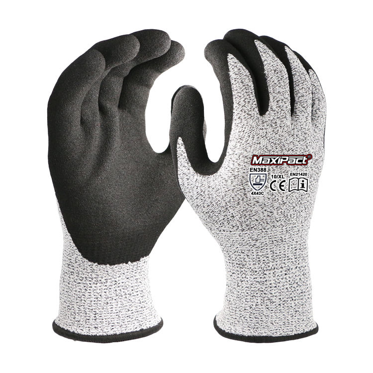 Gants de travail MaxiPact avec logo personnalisé, anti-coupure niveau 3, gants de sécurité pour travaux de construction, gants en nitrile enduits de sable
