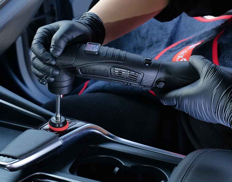 Polisseuse sans fil Maxshine Mini V2 à double action avec un ensemble complet de tampons de polissage