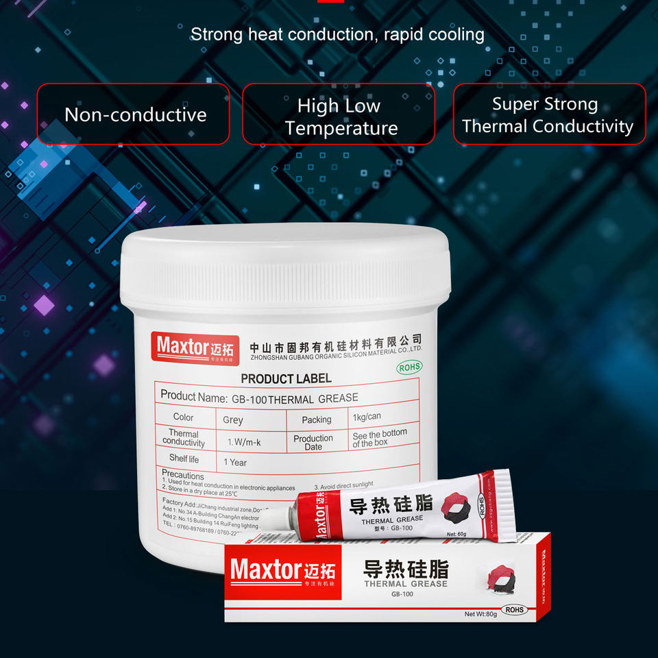 Maxtor GB-100 1.0W/mK Pâte Thermique Blanche à Usage Général Silicone Adhésif Électronique Certifié REACH/ROHS Durée de Conservation de 12 Mois
