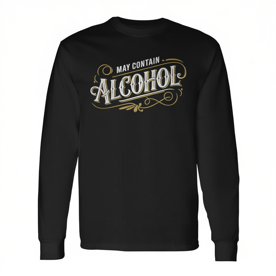 Peut contenir de l'alcool, t-shirt à manches longues, design classique humoristique pour les fêtes