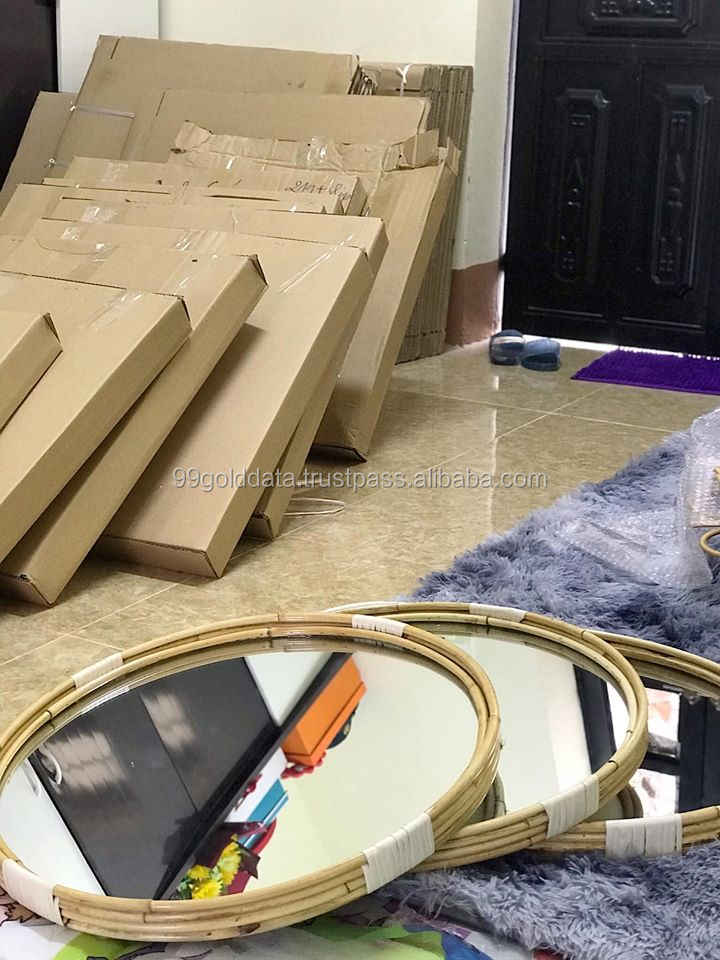 Mayco — cadre en rotin et osier de bambou tissé, artisanal, plan en rotin, effet miroir, pour salon, (WS + 99 données en or)