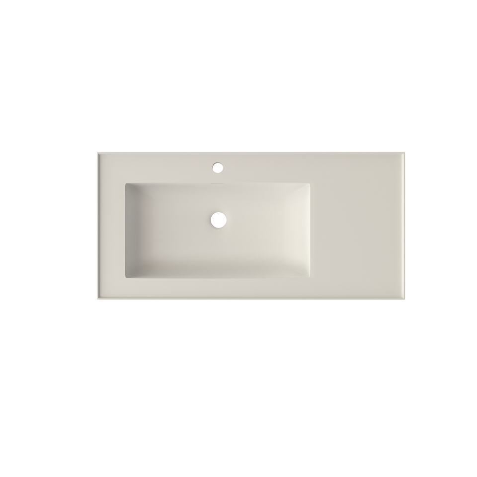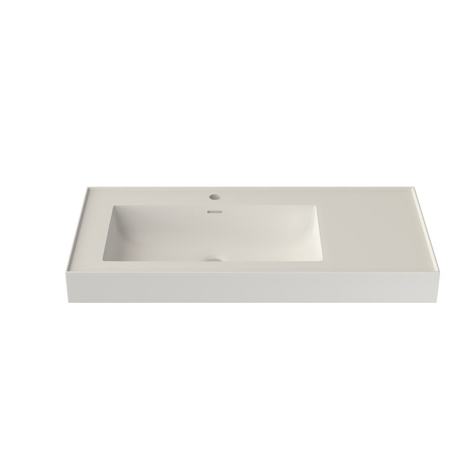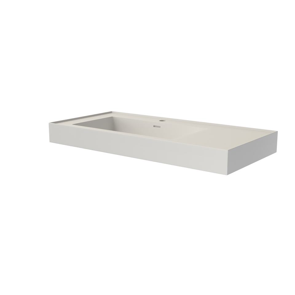 Maydon Élégant Lavabo Mural Rectangulaire Blanc Mat en Surface Solide avec Débordement, Écologique et Durable pour Comptoir de Salle de Bain