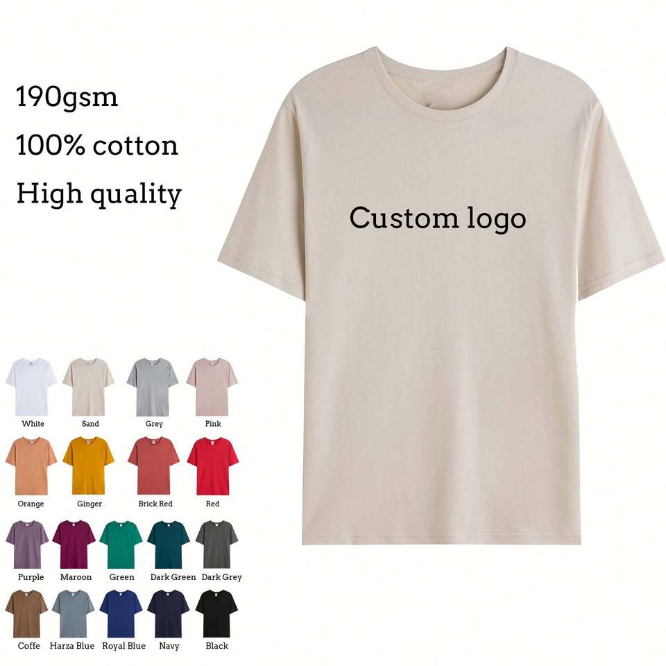 T-shirt unisexe Maysun de haute qualité, personnalisé, 100 % coton, taille US standard, couleur sable brun, doux, écologique, anti-rétrécissement