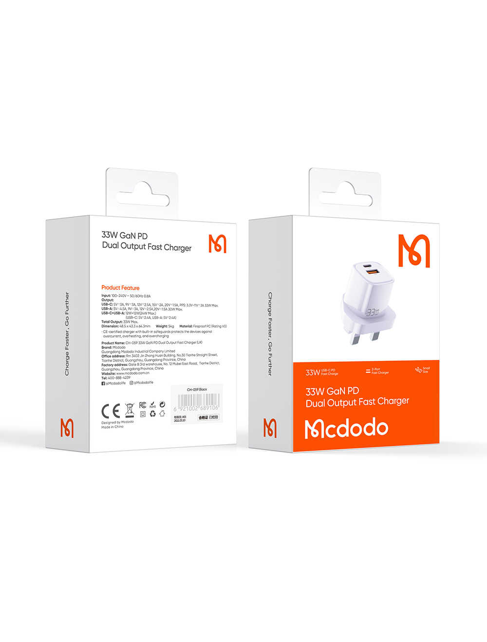 Mcdodo 059 UK Plug Mini 33W 30W USB C Chargeur de voyage coloré PD PPS Bloc chargeur double ports Type-C + Adaptateur mural USB