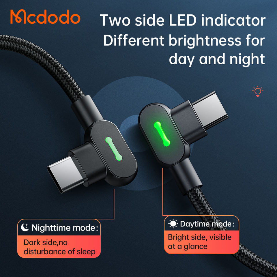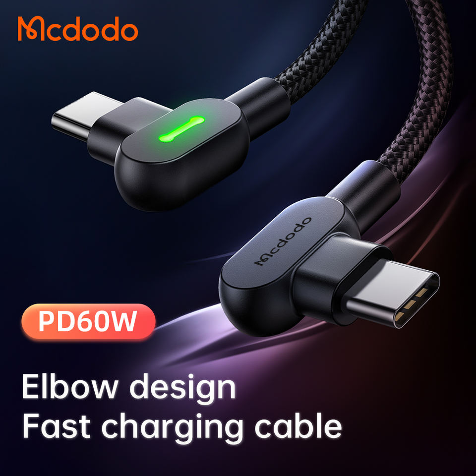 Câble de données Mcdodo 808 à coude, LED USB Type C 3.0, câbles de données de jeu à charge rapide, câble Type C vers USB C 60W 90 pour ordinateur portable
