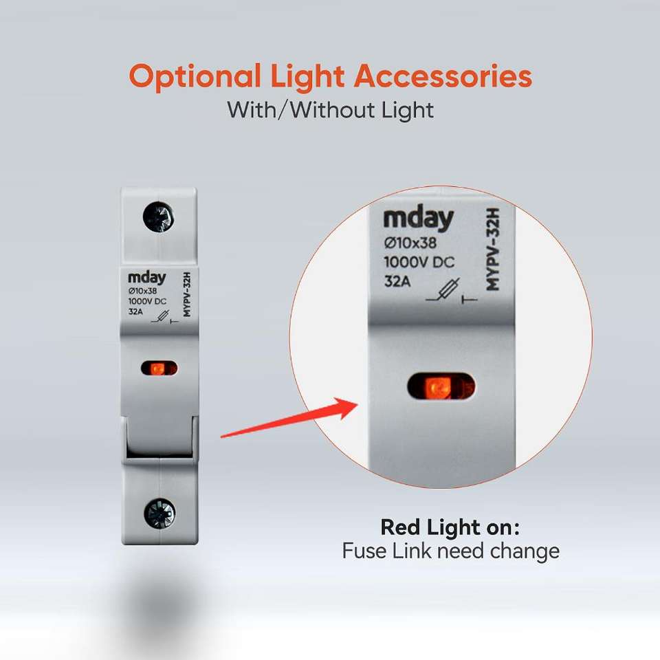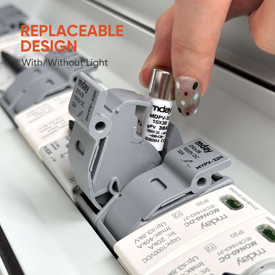 Porte-fusible Mday à haute capacité de rupture 1-63A 1000V DC 10x38 avec courant nominal de 32A en porcelaine 10*38 Lien de fusible