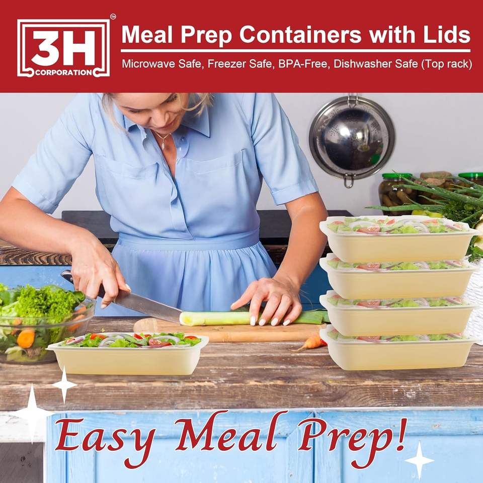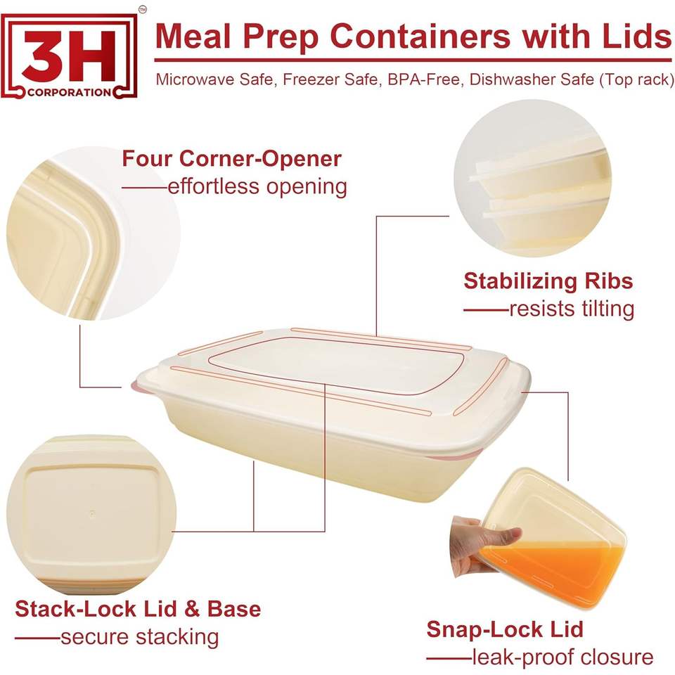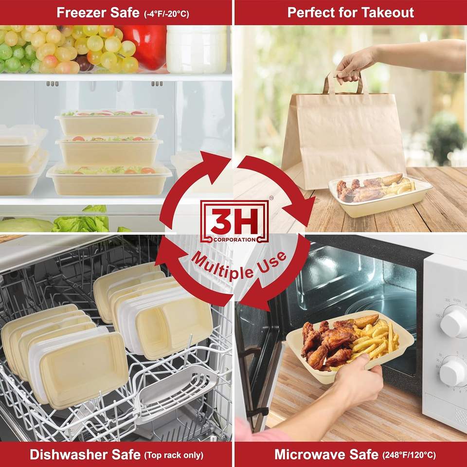 Contenants de préparation de repas réutilisables [Lot de 150, 58 oz] Contenants alimentaires à emporter avec couvercles - Sans BPA, compatibles micro-ondes/lave-vaisselle/congélateur