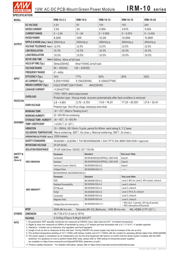 MEAN WELL IRM série, 1W à 60w