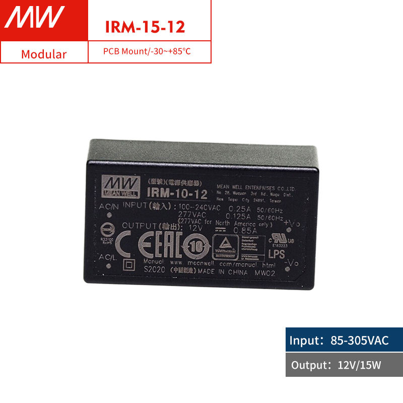 Mean Well IRM 2-60W Modules d'alimentation isolés 85-305VAC Entrée simple 3.3-24V Taille compacte Protection fiable Médical industriel