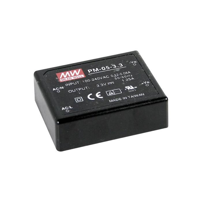 Alimentation électrique Mean Well PM-05-12 5W 12V DC, entrée 100-240VAC, sortie simple, industrielle