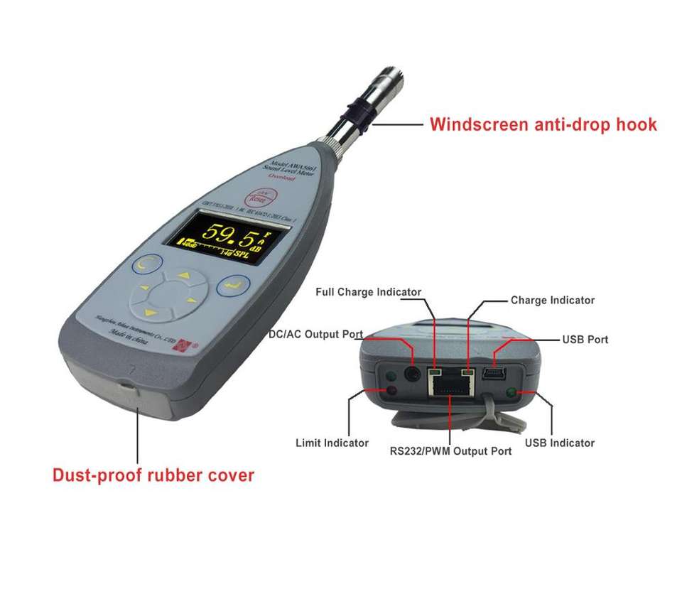 Mesureur de niveau sonore numérique portable de poche, plage de mesure 25dBA-140dBA, AWA5661-1, classe 1, réglage de la sensibilité