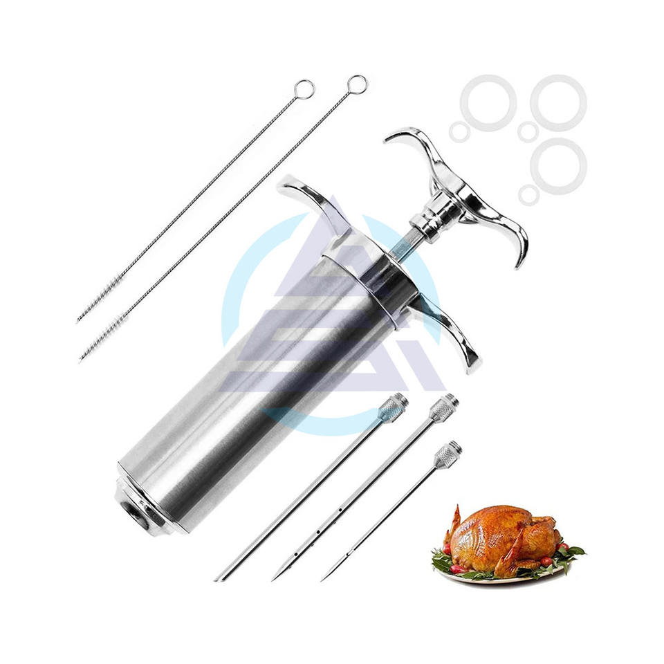 Kit d'injecteur de marinade pour viande en acier inoxydable, kit d'injecteur de marinade pour barbecue, injecteur de marinade pour dinde avec 3 aiguilles à marinade