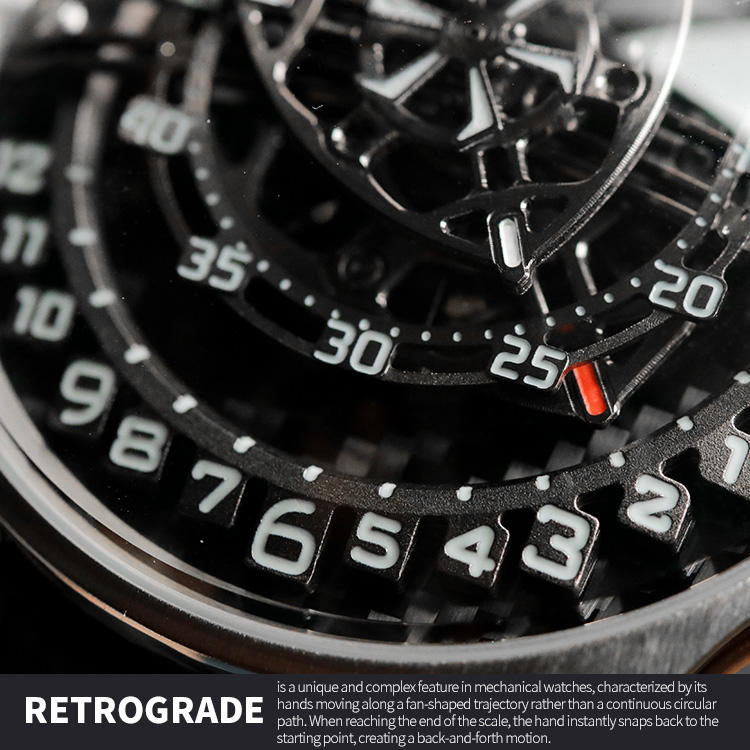 Function:Retrograde hour,Carbon Fiber dial,Luminous function