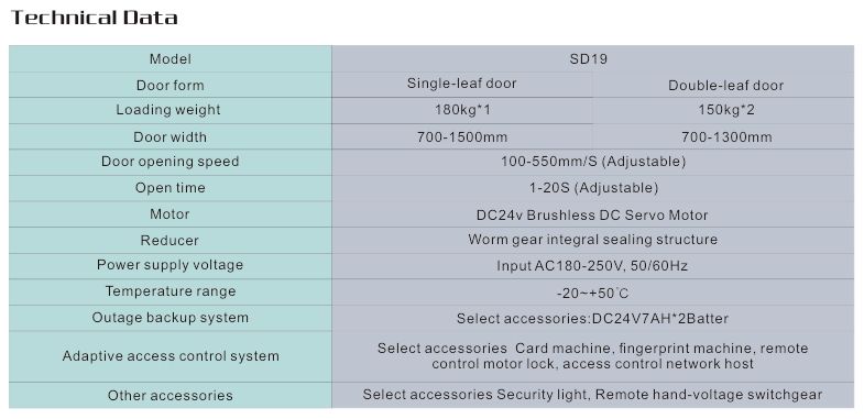 Vitesse d'ouverture de la porte:100-550 mm/S (réglable)