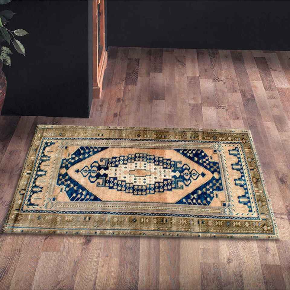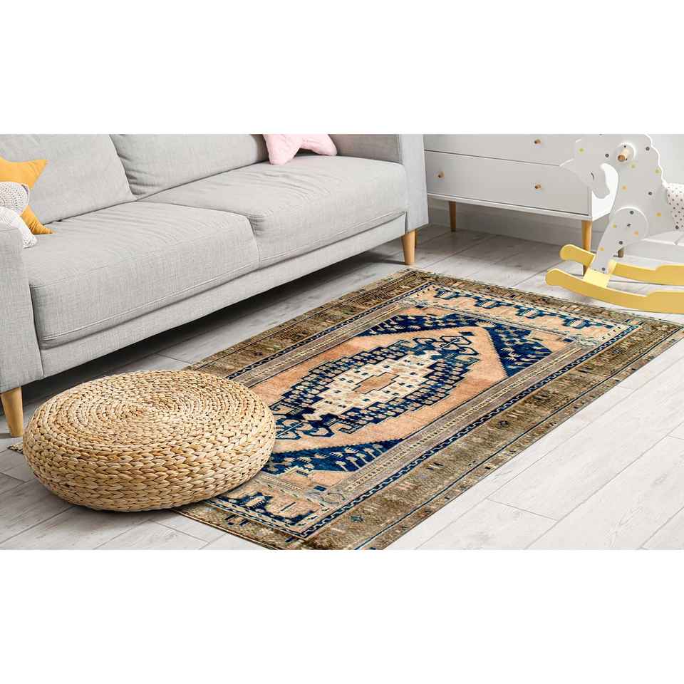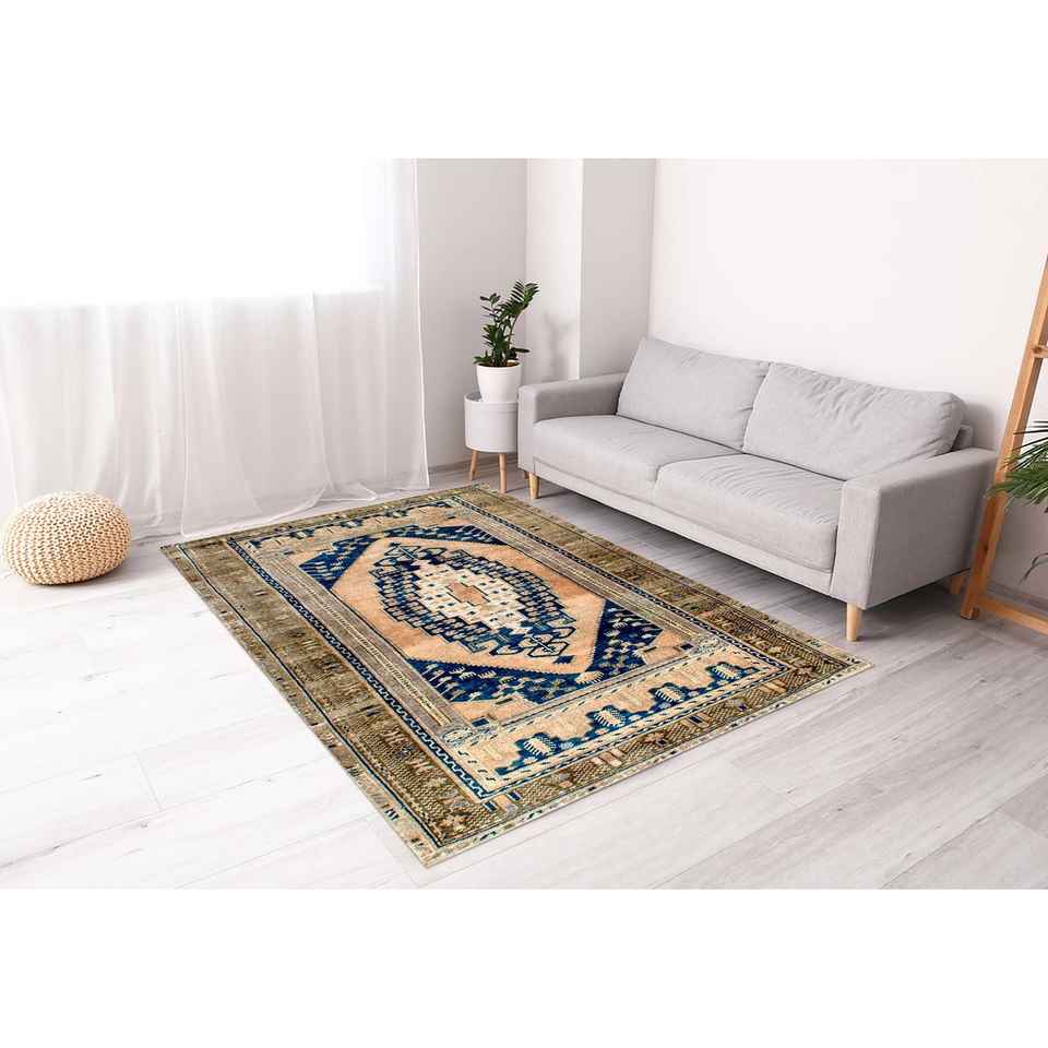 Tapis turc Medallion : motif ethnique bronze, tapis antidérapant, tapis fin non tissé