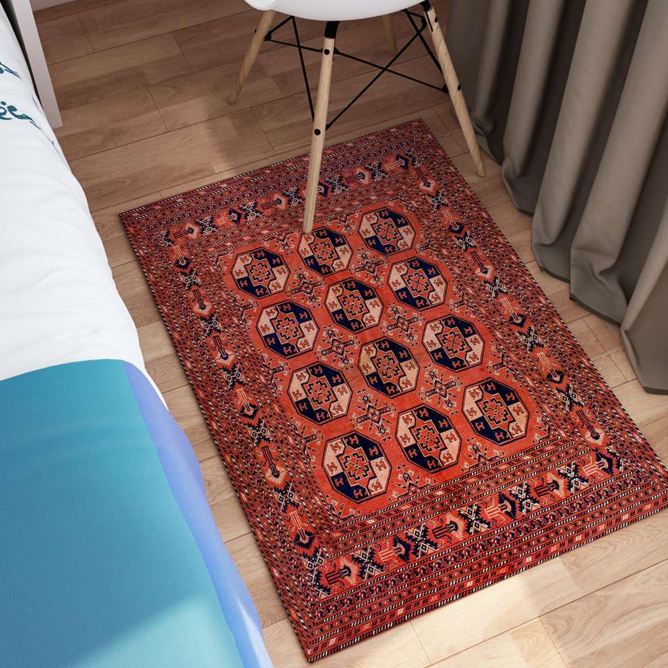 Tapis turc médaillon en patchwork de laine, imprimé, non tissé, doux, écologique avec envers en latex