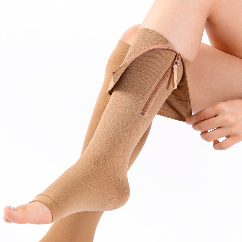 Bas de contention médical avec fermeture éclair, à bout ouvert ou fermé, hauteur genou, pour varices