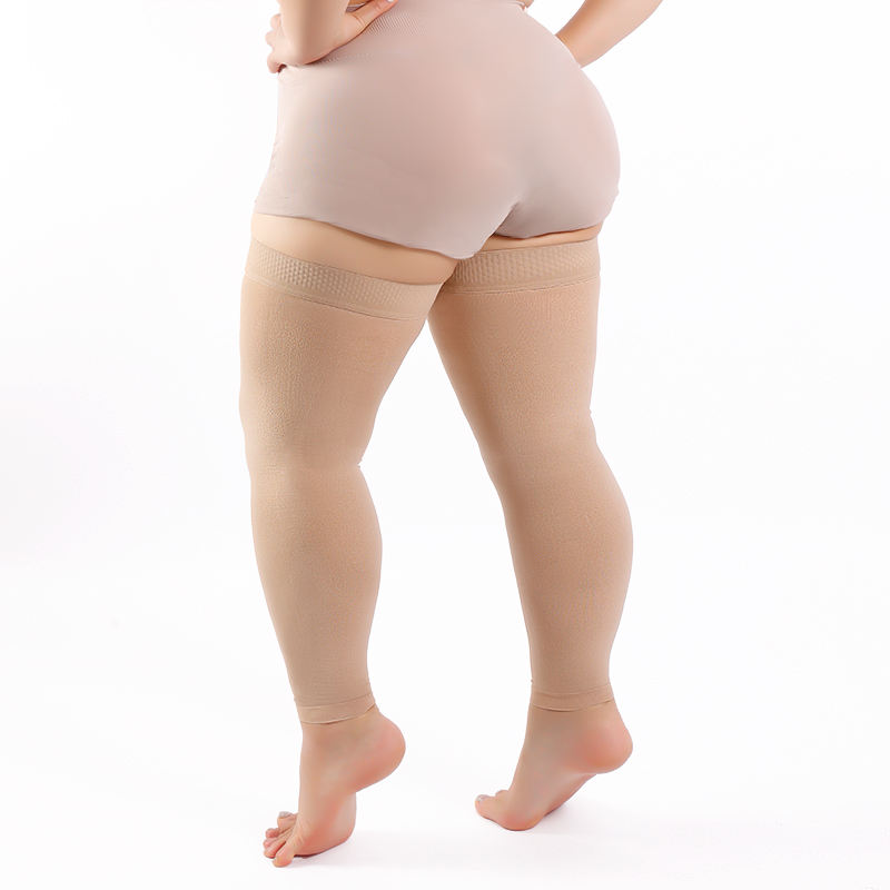 Bas de contention médicaux gradués 20-30 mmHg, fermeté modérée, beige, anti-varices, en nylon, sans pied, cuisse haute