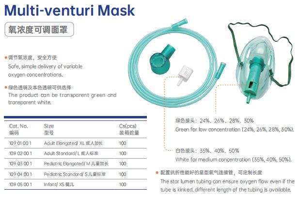 Masque à oxygène Venturi jetable médical Masque à oxygène multi-venturi en PVC avec système Venturi pour adulte pédiatrique infantile