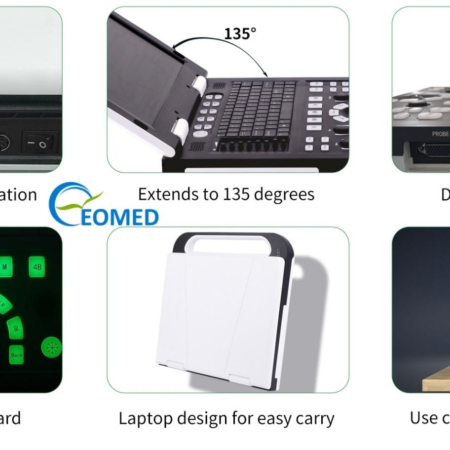 Échographe portable noir et blanc à double sonde médicale avec écran LCD 15 pouces pour usage humain ou vétérinaire BW22