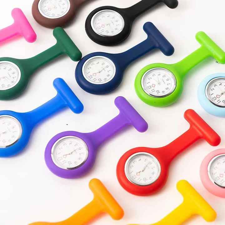 Cadeau médical Plusieurs Couleurs Ronde Bracelet en Silicone Souple Poitrine Clip-On Pin Médecine Horloge Suspendue Soins Infirmiers Médecins