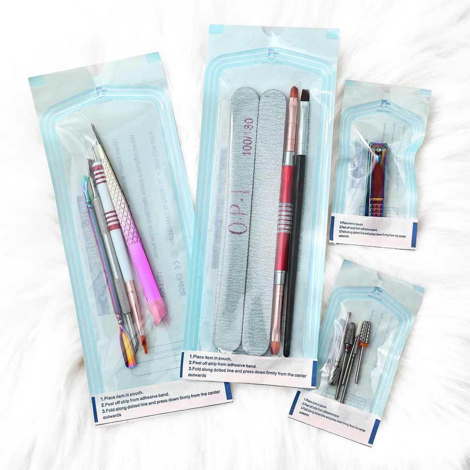 Sacs de désinfection des ongles jetables de qualité médicale, sacs de stérilisation auto-scellants pour limes à ongles et embouts de perceuse, emballés en boîte