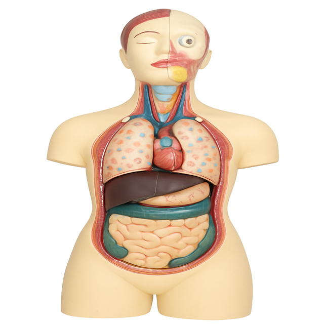 Modèles médicaux, modèle d'anatomie du torse humain à mi-corps, organes amovibles/détachables, codage couleur anatomique pour usage masculin et féminin - Métal