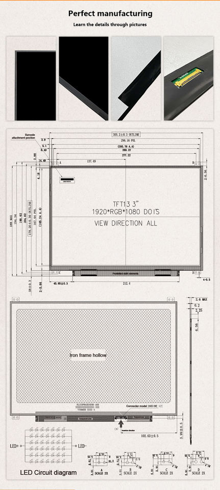 Module d'affichage LCD 13,3 pouces haute résolution Full HD 1920x1080 pour surveillance médicale