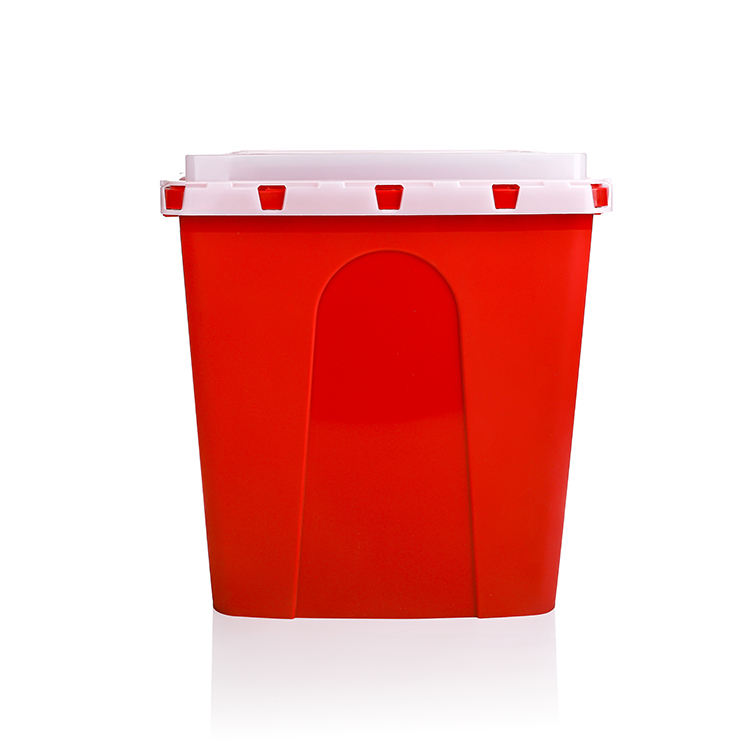 Conteneurs à objets piquants en plastique médical rouge de 6 gallons avec bouton latéral pour la collecte des aiguilles et des déchets médicaux en milieu hospitalier