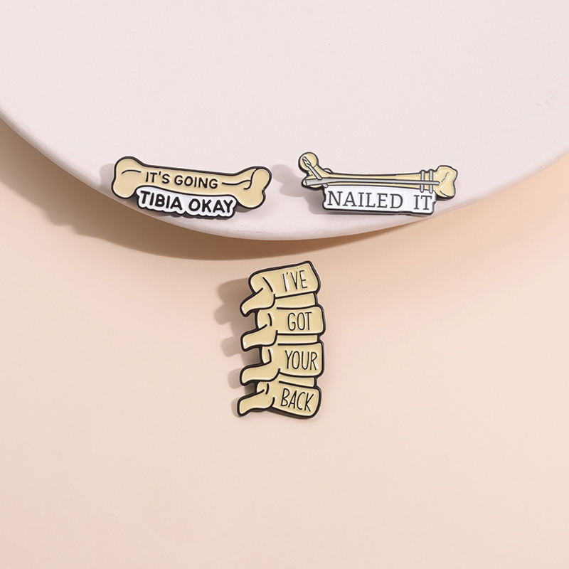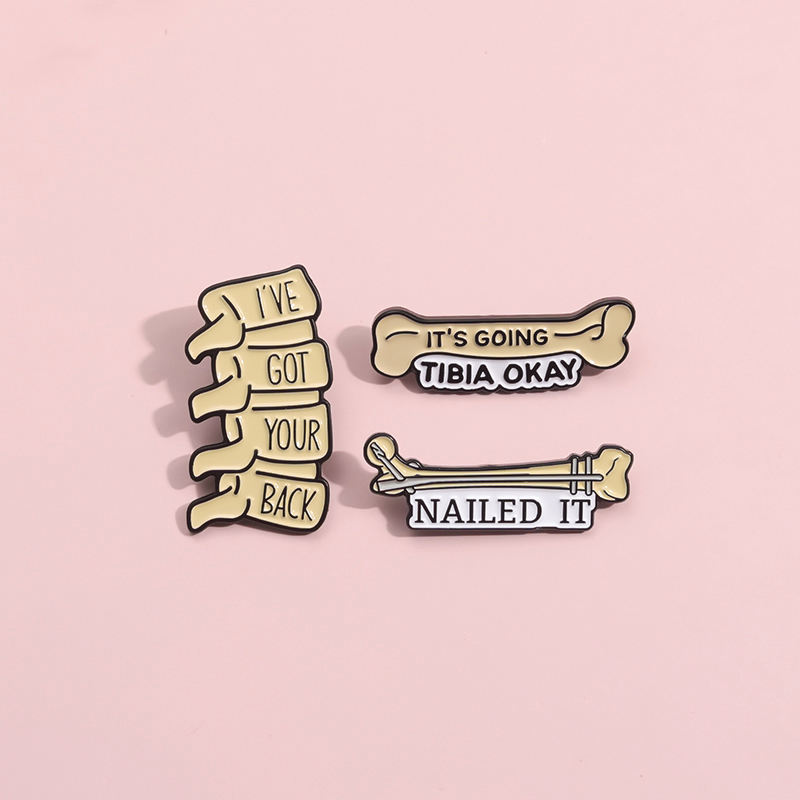 Jeu de mots médical son Tibia va bien épingles en émail drôle j'ai vos os du dos broches de la colonne vertébrale insigne de revers bijoux cadeau pour un ami