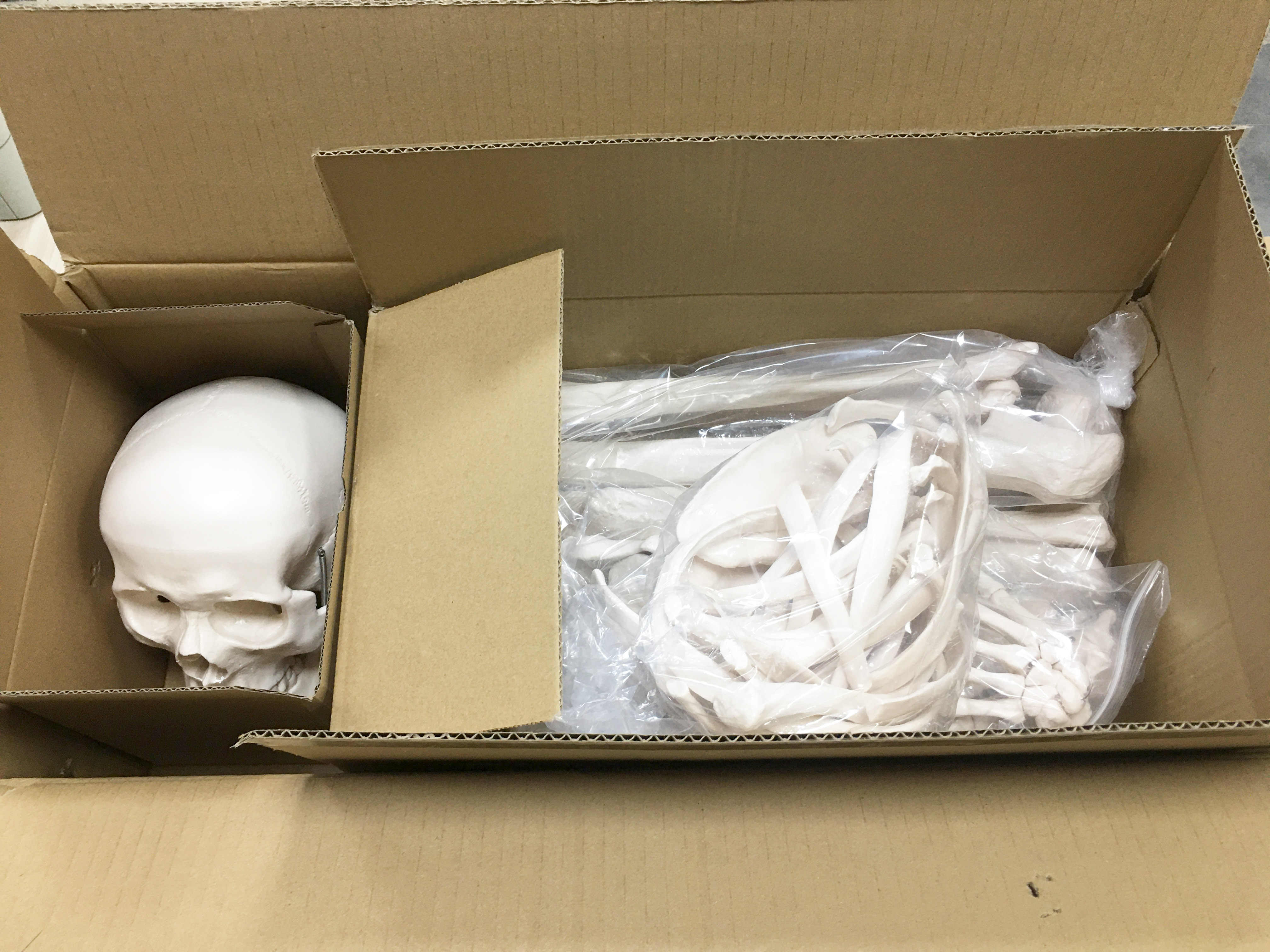 Comprend crâne en 3 parties, main droite et pied droit sur fil