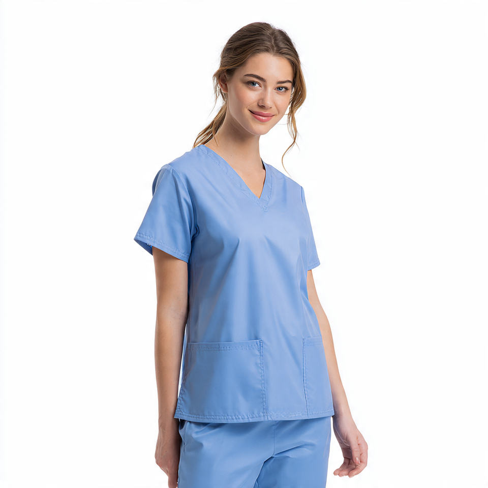 Tops médicaux 100% polyester extensible à manches courtes pour infirmières