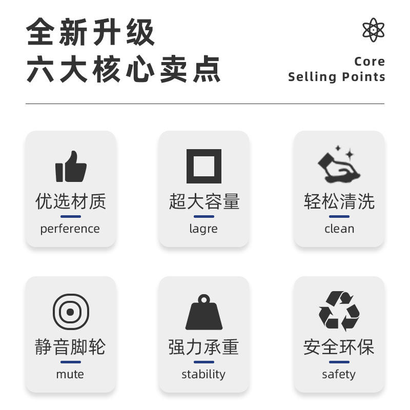 Chariot médical en acier inoxydable ABS avec panier de rangement carré épaissi, chariot de nettoyage du linge pour hôpital, gestion 6S