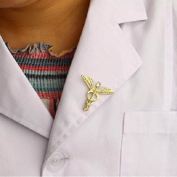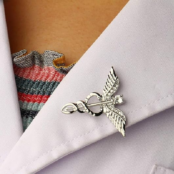 Broche de revers avec symboles médicaux Caducée et Stéthoscope pour Infirmière et Médecin
