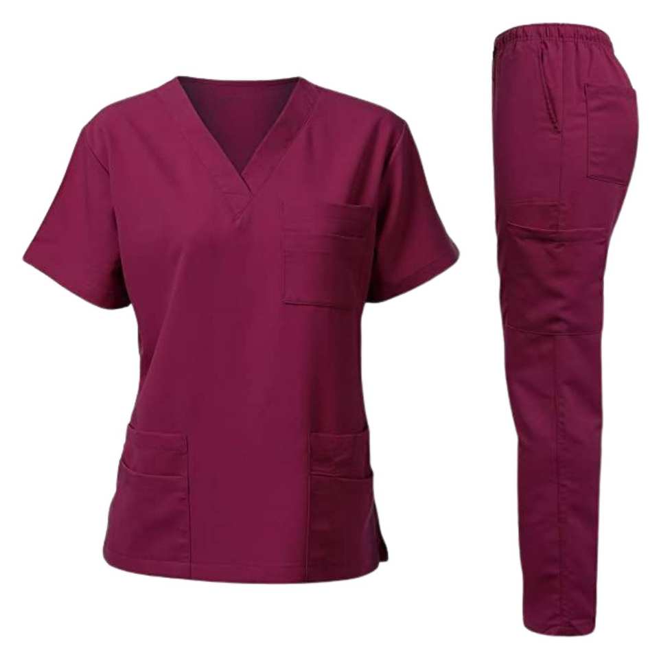 Ensemble d'uniformes médicaux haut de gamme pour hôpitaux, tenues d'infirmières, vêtements de travail respirants en mélange de coton, haut à col en V et pantalon droit – Fabricant