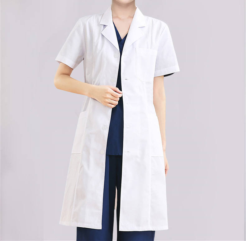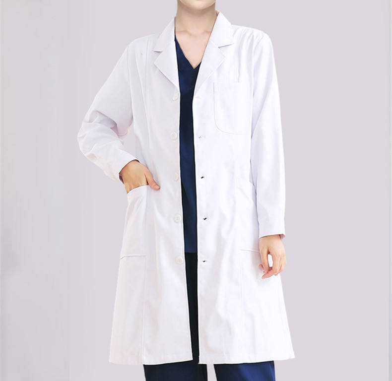 Production Name:Full Length Lab Coat with Pockets White Embroidery Lab Coat