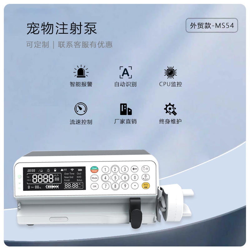 Pompe à perfusion vétérinaire Medicool MS54 électrique certifiée CE pour usage en soins intensifs canins, facile à utiliser, équipement médical de classe II