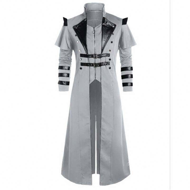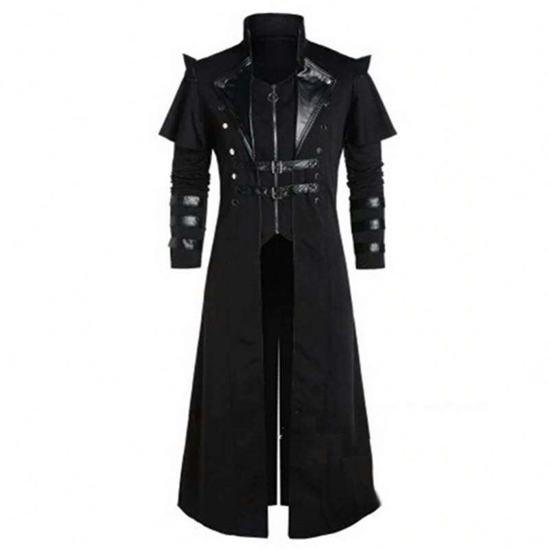 Costumes de cosplay d'anime médiévaux, vêtements pour hommes, veste longue noire vintage, gothique, steampunk, punk, trench-coat, vêtements de chevalier noble
