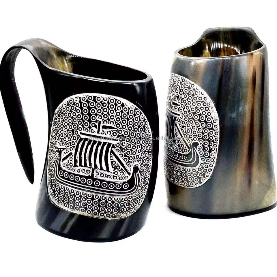 Tasse médiévale antique personnalisée fabriquée à la main en corne à boire naturelle Viking sculpté Design percolateur très fini