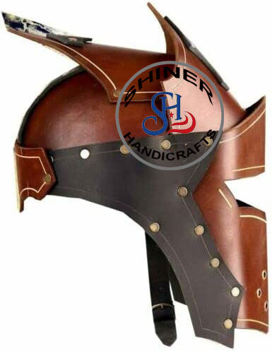 Armure médiévale en cuir masque facial casque Halloween cuir casque armure marron masque Cosplay Renaissance guerrier Costume