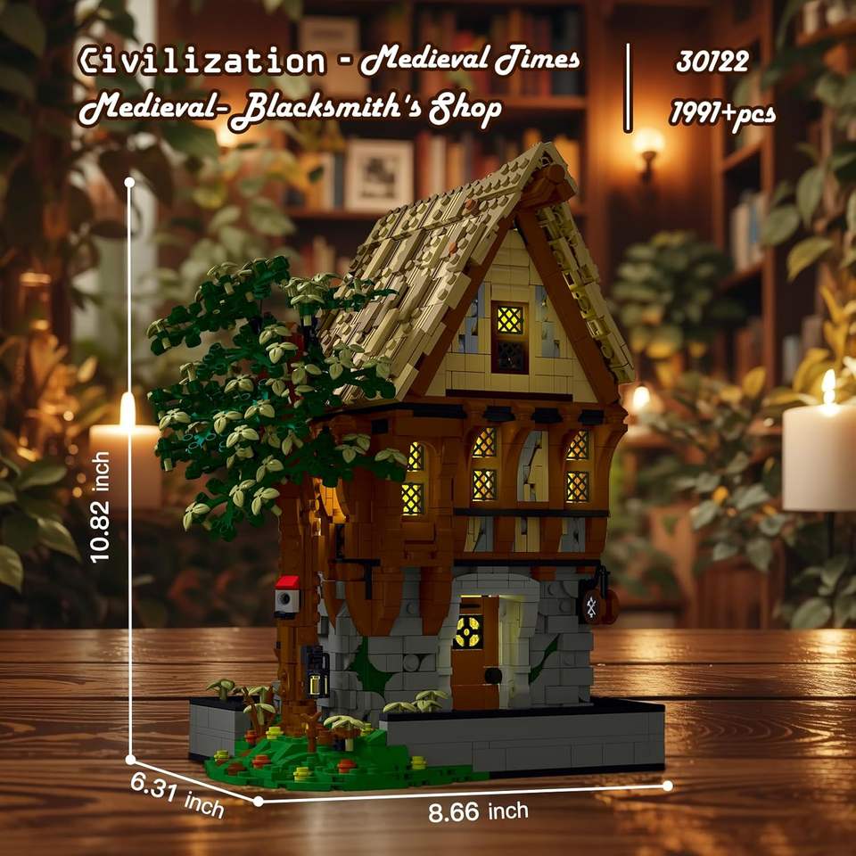 Forgeron médiéval 1991 PCS Blocs de construction Jouet avec lumières pour enfants Jeu historique STEM