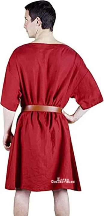 Adults' Red Medieval Cotton Tunic Half Sleeves Floral Anti-Wrinkle for Roman Greek Historical Reenactments Themed Parties
