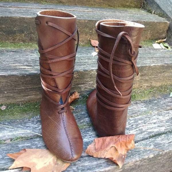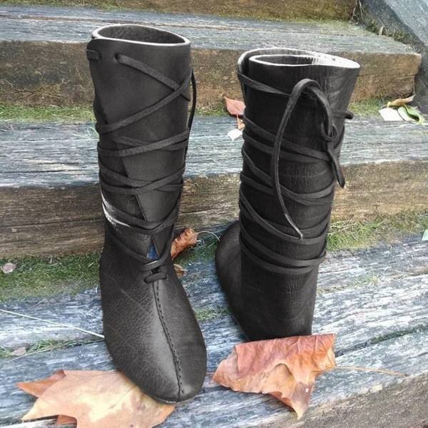 Medieval Elf Princess Noble Lace up Single Shoes Carnival Men Knight Prince Leather Boots Prop Halloween Cosplay Costume