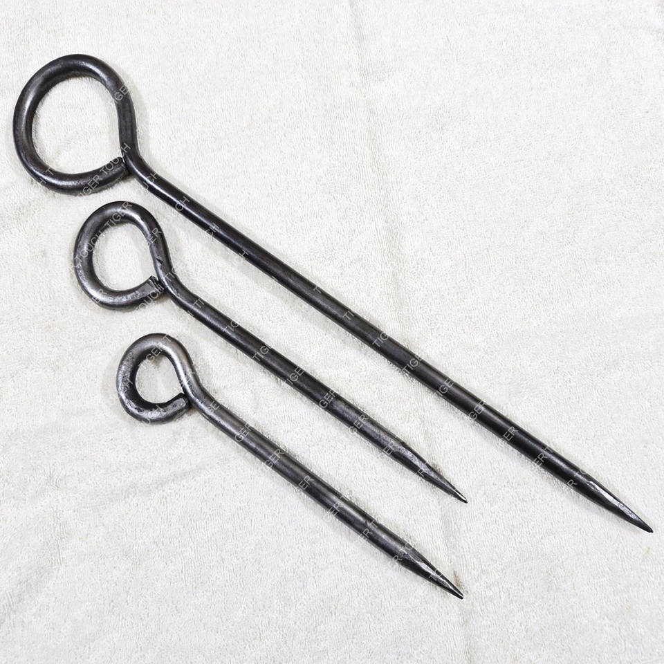 Anneau de cheville de tente en fer médiéval forgé à la main en acier au cuivre environ forgé à la main manger Pick TT-5483