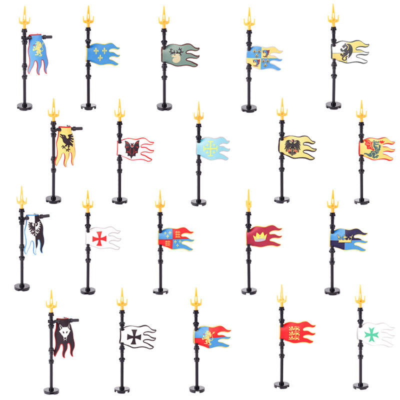 Kit de Blocs de Construction Médiévaux Chevalier Château Drapeau Templier Lion Loup Soldats Accessoires Bannière du Roi Support Briques Jouets