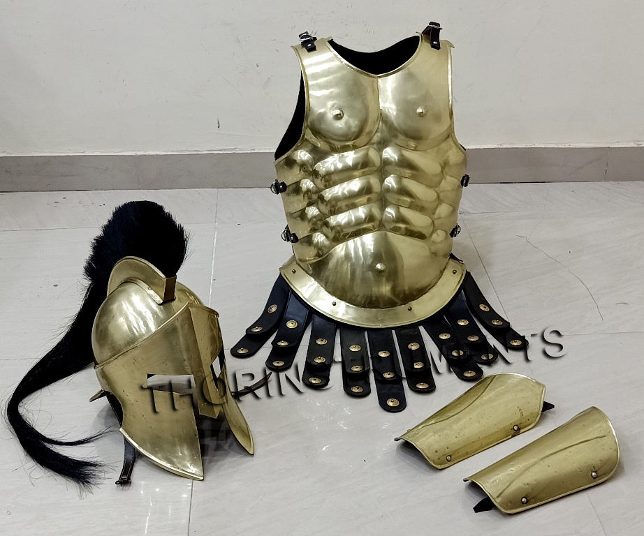 Médiévale Muscle Veste Médiévale 300 Spartiate Casque D'armure Bras Guared Design En Laiton